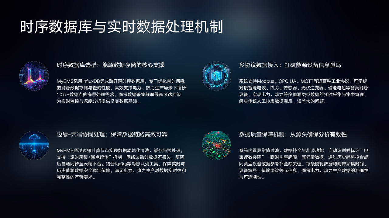 前面我们了解了MyEMS系统的定义、架构优势、技术栈等内容,也分析了其与电力热力行业的适配性。接下来,我们将聚焦于MyEMS技术架构与核心能力。这部分内容将深入剖析系统在数据采集、存储、处理、分析等方面的机制,为大家呈现其强大的技术支撑。