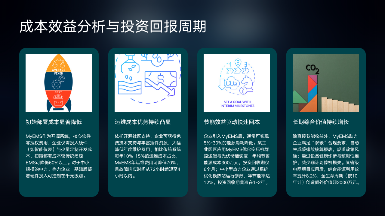 前面我们了解了MyEMS在多个领域的典型案例与实施效果,展现了其强大的节能与管理能力。接下来,让我们聚焦第“与传统系统对比优势”。此页将揭示MyEMS相比传统系统在各方面的显著优势。之后,我们还将探讨其成本效益与投资回报等内容。