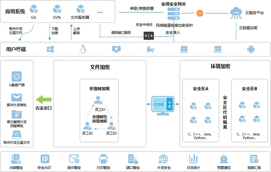 在数字化转型的浪潮中,企业的核心代码与算法已成为最宝贵的知识产权资产。然而,传统的开发环境在安全与效率之间难以平衡:过度管控会束缚开发者的创造力,而放任自流则可能导致代码泄露、数据外发等严重安全风险。企业迫切需要一种既能保障核心资产安全,又不影响正常研发效率的解决方案。安得卫士数据沙盒通过构建一个隔离、受控且透明的安全操作环境,为企业代码从编写、编译到流转的全生命周期提供无缝防护,真正实现 “安全不扰开发,管控不留死角”。