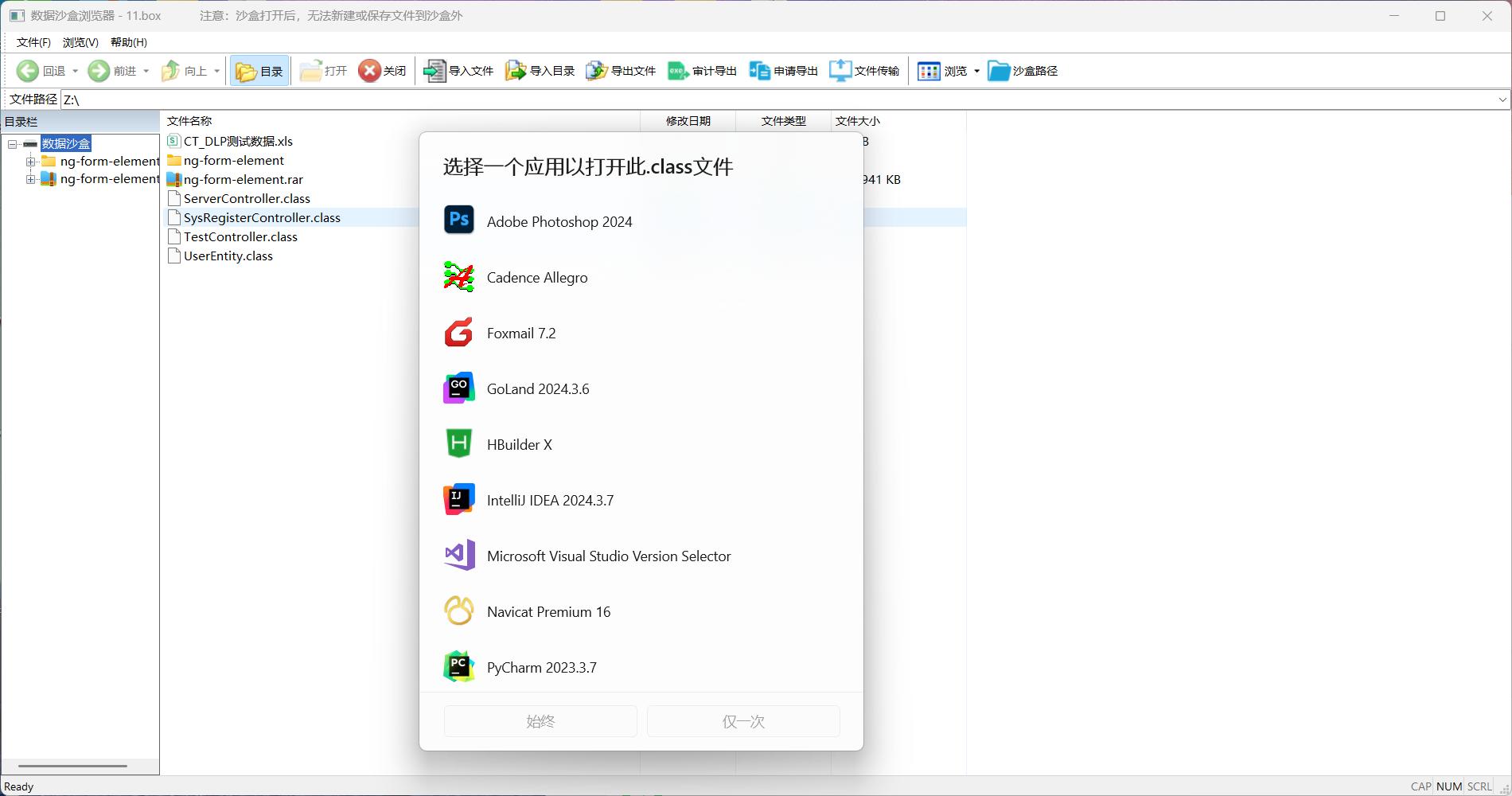②加密导出:所有从沙盒导出到本地目录的数据,无论是单个文件还是整个目录,均会被强制加密存储,确保即使文件被带出也无法直接使用。