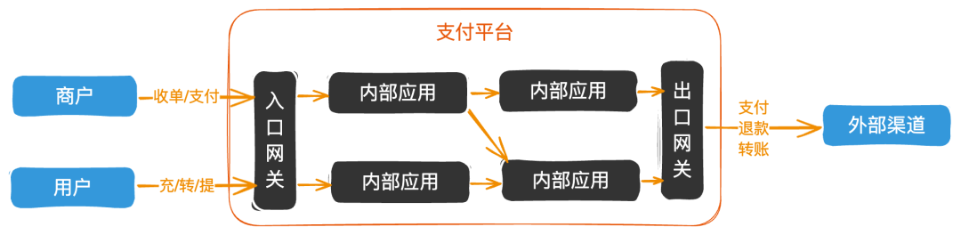 除了渠道交易,内部应用之间的交互也可能有类似情况。