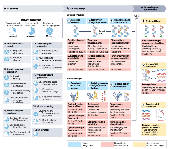 想象一下,如果能像编程写代码一样去设计蛋白质——这个听起来像科幻小说的场景,现在正在成为现实。 从研发抗癌新药到打造高效工业酶,科学家们一直梦想着能够随心所欲地"定制"蛋白质。过去,蛋白质设计更像是一门"手艺活":需要在实验室里反复试错,运气好的话可能几个月出结果,运气不好的话,几年功夫都可能打水漂。 但现在,人工智能正在改写这个游戏规则。 来自哈佛大学George Church实验室(没错,就是那位合成生物学教父)的团队,在Nature Reviews Bioengineering上发了一篇重磅综述。这不是那种泛泛而谈的文章,而是一份实打实的"操作手册"——从设计策略到具体工具,从理论框架到实战案例,全都讲透了。 我花了两天时间啃完这篇综述,发现它最大的价值在于:把纷繁复杂的AI工具整理成了一个清晰的"工具箱体系",还给出了详细的使用路线图。今天这篇文章,我就试着用最直白的方式,带你看懂这场正在发生的科学革命。