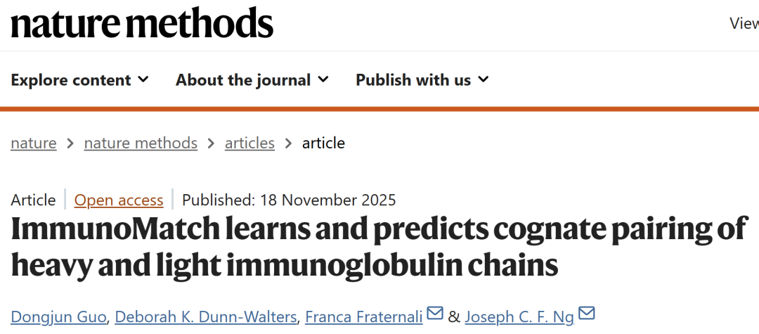 Guo, D., Dunn-Walters, D.K., Fraternali, F. et al. ImmunoMatch learns and predicts cognate pairing of heavy and light immunoglobulin chains. Nat Methods (2025).