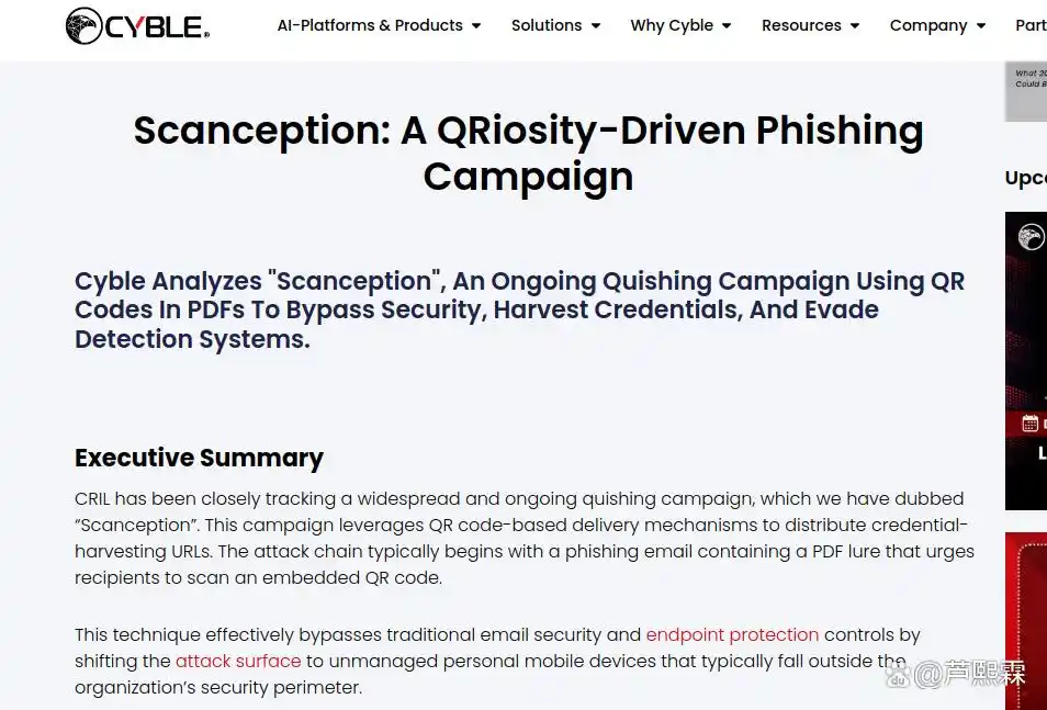 二维码作为一种快速编码与解码信息的图形符号,自2000年代中期以来在全球范围内迅速普及。其无需手动输入URL的特性极大提升了用户体验,但也为网络攻击者提供了绕过传统文本内容检测的新路径。2025年7月,网络安全公司Cyble披露了一项名为“Scanception”的持续性钓鱼活动,该活动以企业员工为主要目标,通过伪装成人力资源手册、财务通知等合法PDF文档,在末页嵌入诱导性二维码,引导用户使用个人移动设备扫描,进而跳转至伪造的Office 365登录页面。据报告,该活动在三个月内生成超过600个独特PDF样本,其中近80%在VirusTotal上无任何引擎告警,凸显其高度规避性。