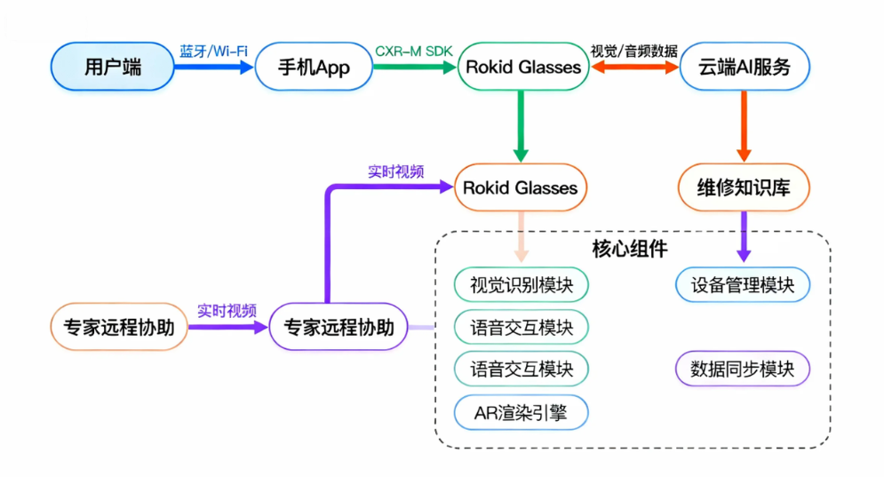 AI与AR技术的融合为这一领域带来革命性机遇。Rokid Glasses作为新一代AI眼镜设备,具备实时视觉识别、多模态交互和AR信息叠加能力,结合CXR-M SDK提供的移动端协同开发框架,为构建沉浸式家电故障诊断系统提供了理想平台。