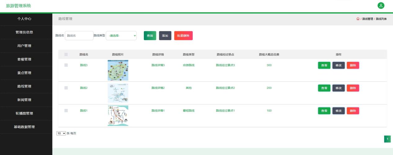 旅游管理系统在Eclipse环境中,使用Java语言进行编码,使用Mysql创建数据表保存本系统产生的数据。系统可以提供信息显示和相应服务,其管理员管理套餐,套餐订单和套餐留言,管理景点,路线以及新闻信息。用户查看景点,路线,套餐,可以预订套餐并发布套餐留言。