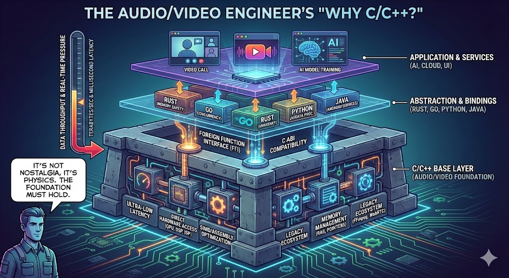 在一个相当长的时间窗口内, 音视频世界的“地基”仍然会是 C/C++ 写的。