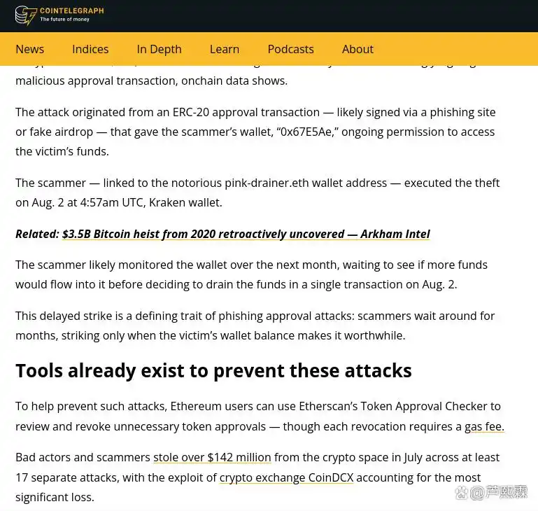 根据Cointelegraph报道及Scam Sniffer链上分析,攻击过程可分为四个阶段:
