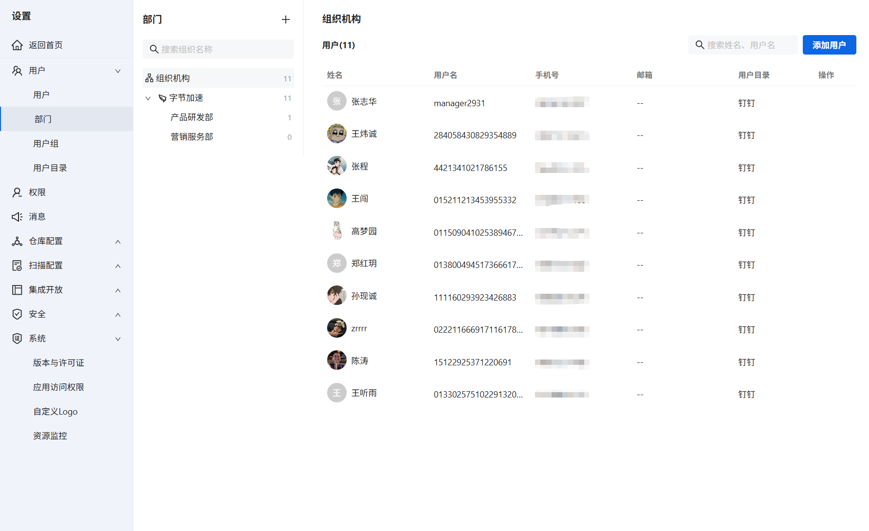 2.也可以点击用户进行查看同步完成后钉钉用户,同步过来的人用户目录会显示钉钉