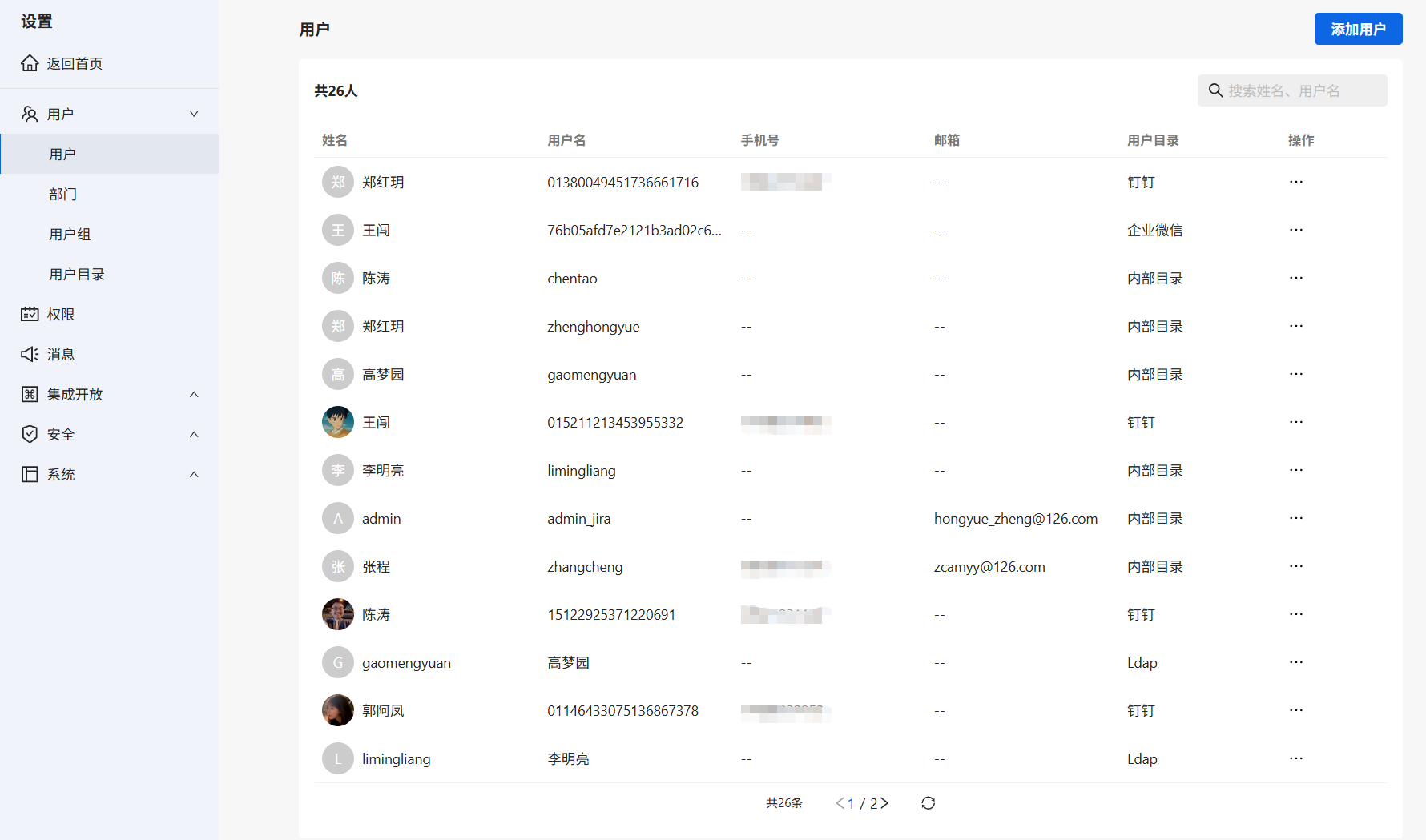 2.也可以点击用户进行查看同步完成后LDAP用户,同步过来的人用户目录会显示LDAP