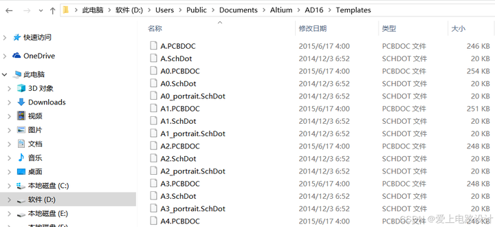 其中的 A0~A4.SchDot文件就是我们需要的模板文件了,带有 portrait 后缀的指竖向的文件形式。这里选取最常用的 A4.SchDot模板,以 DXP.EXE 打开并进行修改。