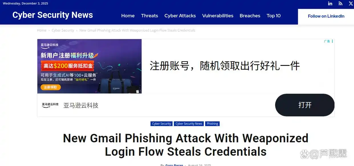 关键词:Gmail钓鱼;实时反向代理;AiTM;OAuth劫持;多因素认证绕过;会话令牌窃取;条件访问