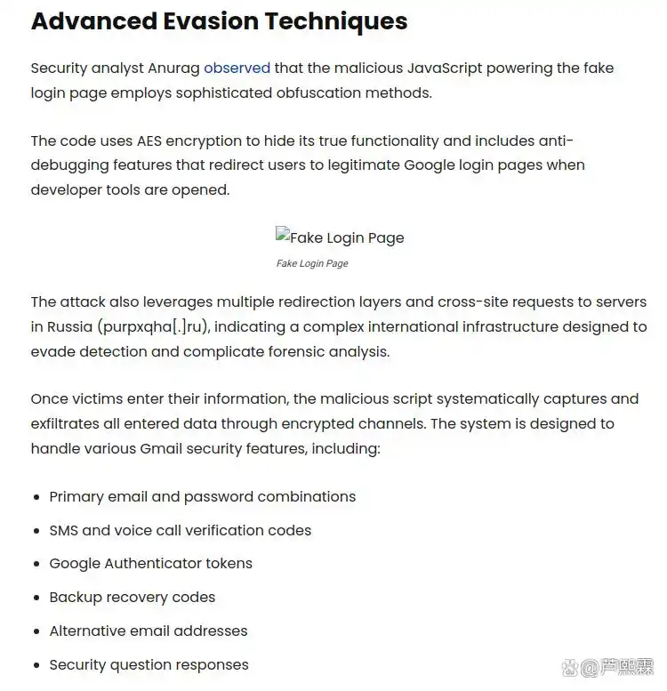 钓鱼前端(Phishing Frontend):部署于攻击者控制的域名(如google-security-alert[.]com),呈现与Google登录页像素级一致的界面;
