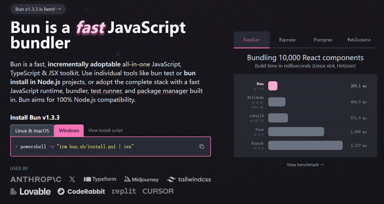快速的性能:Bun 旨在提供高性能,无论是启动时间、执行速度还是安装依赖包的速度。