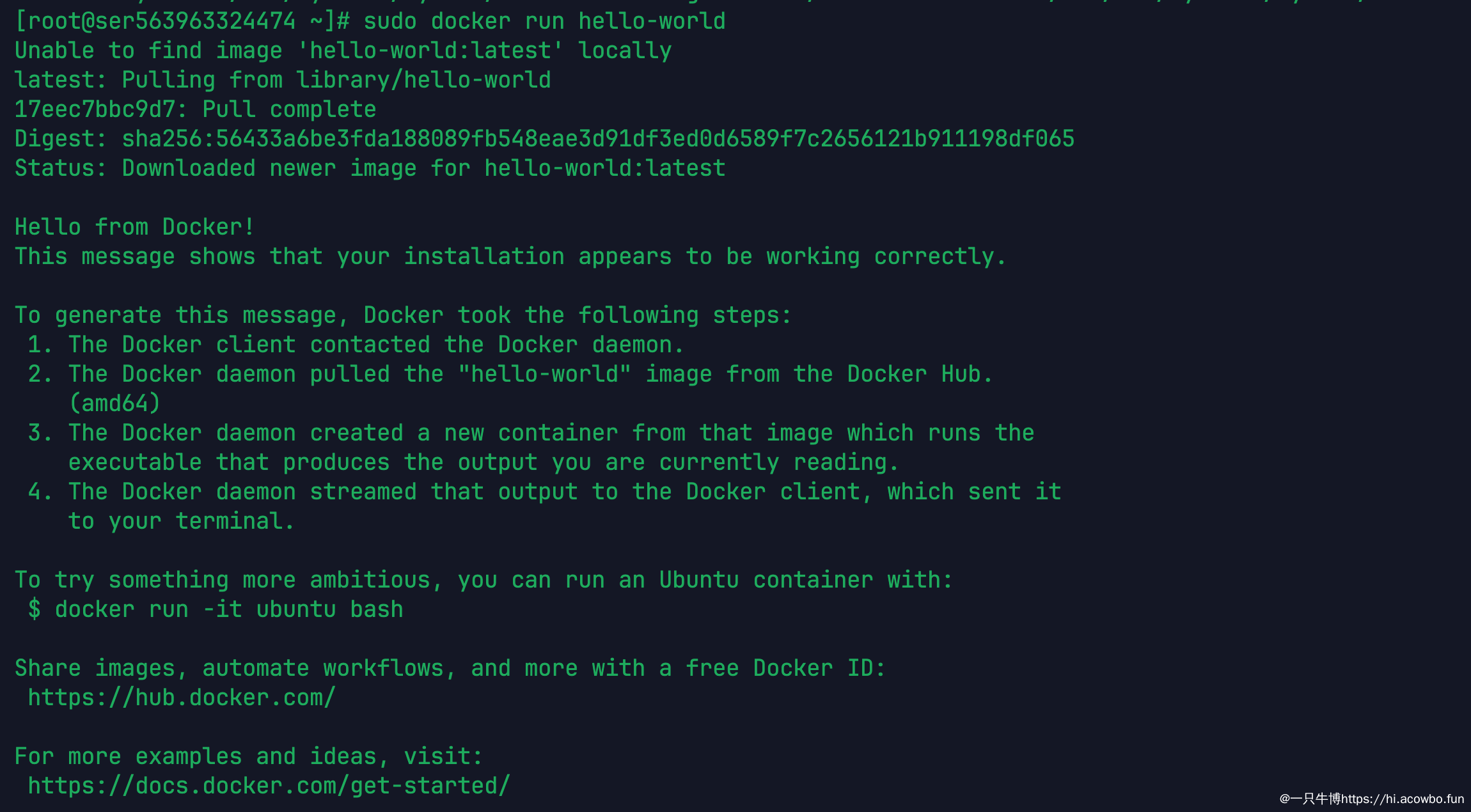 sudo docker run hello-world