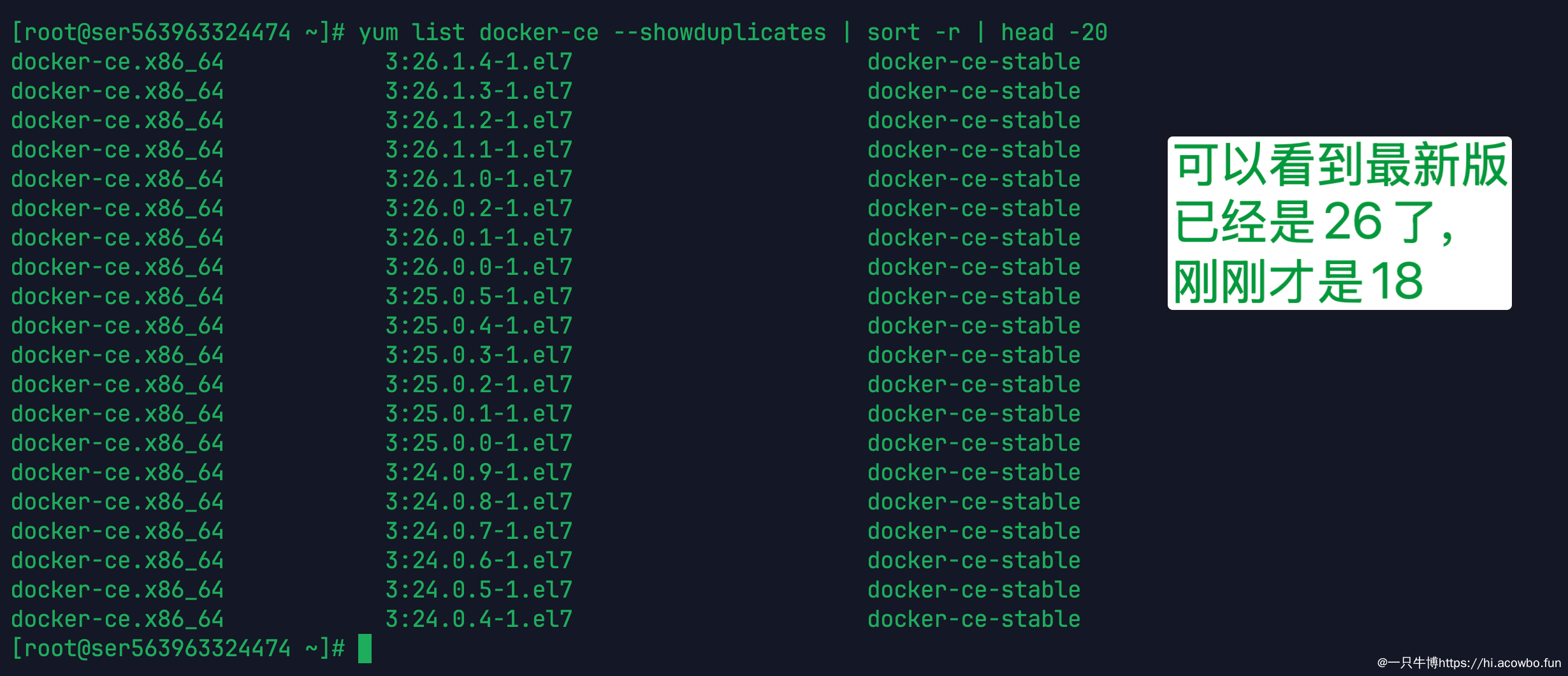 现在可以看看有哪些 Docker 版本可以安装了: