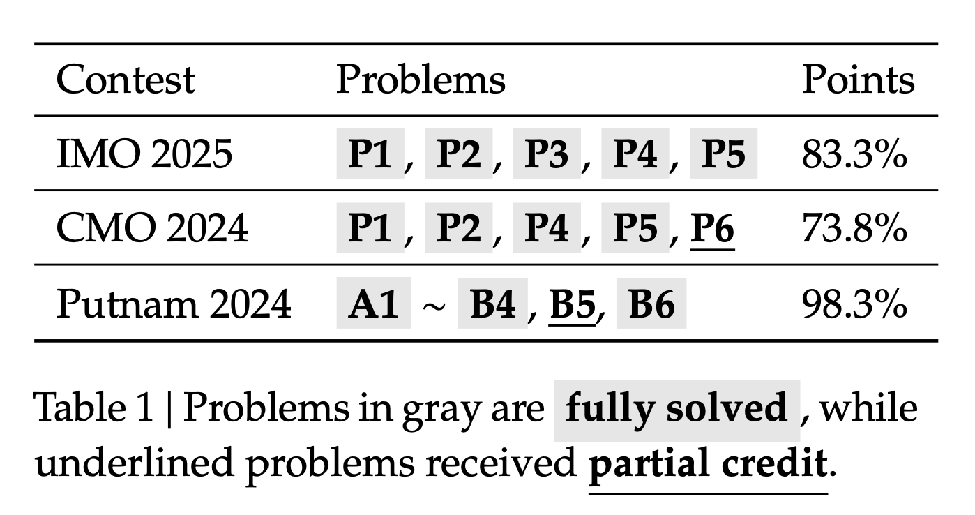 像 Lean (de Moura et al., 2015) 和 Isabelle (Paulson, 1994) 这样的证明助手提供了验证证明的可靠方法——证明必须用形式化语言编写,一旦编译通过,正确性即得到保证。AlphaProof (AlphaProof and teams, 2024; Trinh et al., 2024; Chervonyi et al., 2025) 是一个专门用于形式化证明搜索的系统,在 IMO 2024 上达到了银牌水平,但需要密集的计算。虽然利用非形式化推理来指导形式化证明生成已被广泛探索 (Jiang et al., 2023),但最近的推理模型极大地提高了非形式化推理的质量,使这种指导更加有效。像 DeepSeek-Prover-V2 (Ren et al., 2025) 和 Seed-Prover (Chen et al., 2025) 这样的系统现在可以在相同的计算预算内生成更多有效的形式化证明,Seed-Prover 在 IMO 2025 上解决了 6 个问题中的 5 个。值得注意的是,这些结果是在没有专门针对定理证明任务优化非形式化推理组件的情况下取得的。我们相信,推进自然语言定理证明将显著造福形式化推理。我们希望通过利用非形式化洞察力和形式化保证,为建立真正可靠的数学推理系统做出贡献,从而推动数学研究。