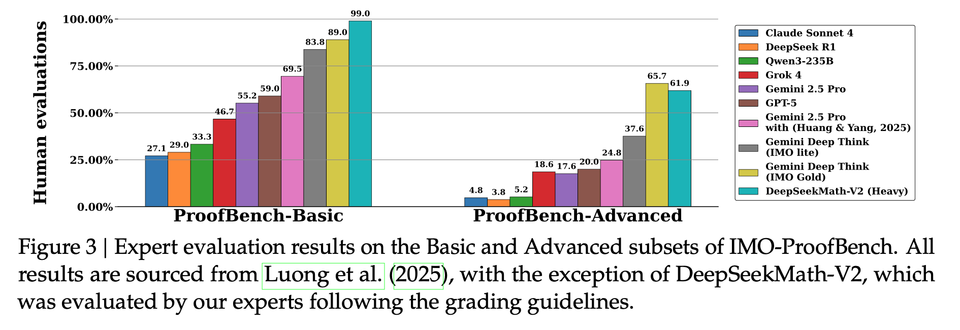 基于 DeepSeek-V3.2-Exp-Base(DeepSeek-AI, 2025),我们开发了 DeepSeekMath-V2,这是一个针对自然语言定理证明进行优化的大语言模型,展示了可自我验证的数学推理能力。我们的模型可以评估并迭代改进其自身的证明,在包括 IMO 2025 和 CMO 2024 在内的顶级高中数学竞赛中达到了金牌水平。在 Putnam 2024 本科生竞赛中,它获得了 118/120 分,超过了人类参赛者获得的最高分 901。