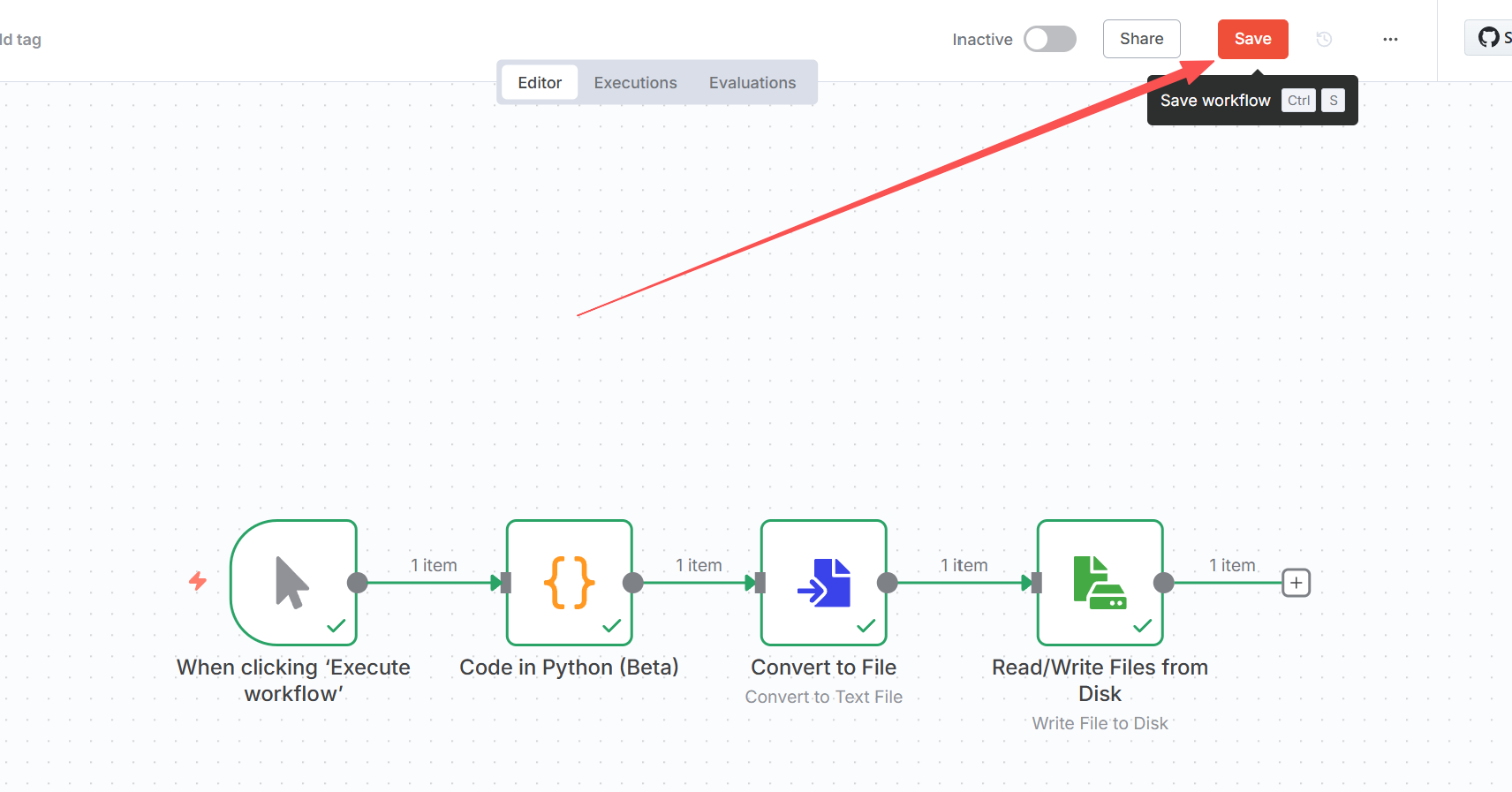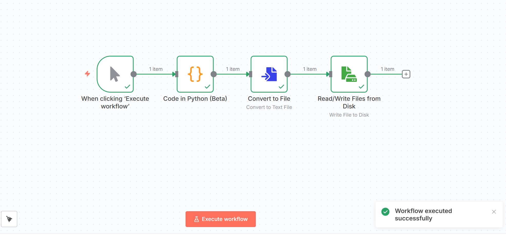 回到主界面我们点击Execute workflow,执行整个工作流,成功的右下角都会出现一个勾的图标