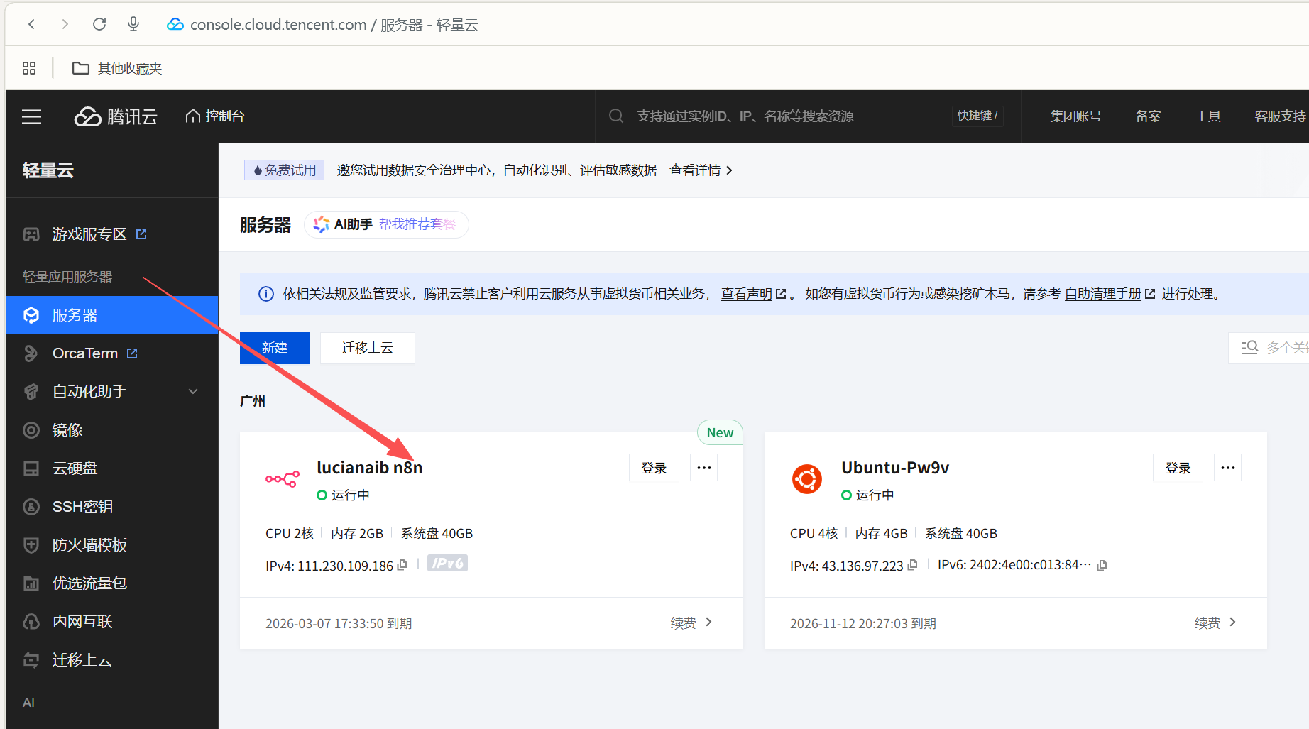打开网站:https://console.cloud.tencent.com/lighthouse/instance/index?rid=1,点击登录。