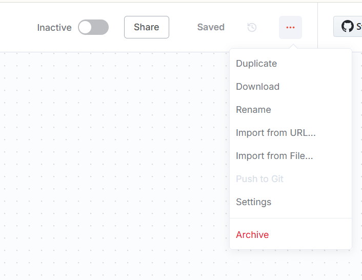 右侧这边可以复制,下载,导入工作流等操作。可以方便把工作流分享给别人或直接使用别人的工作流。