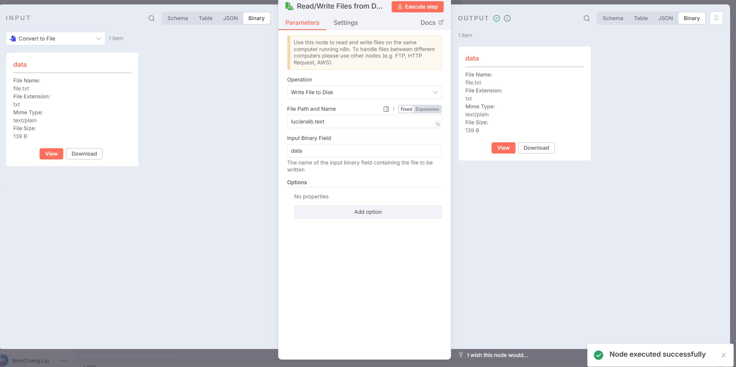 在File Path and Name输入文件名称(例如:lucianaib.text),点击Execute step(执行步骤)按钮,右侧output那边就会出现输出的内容。