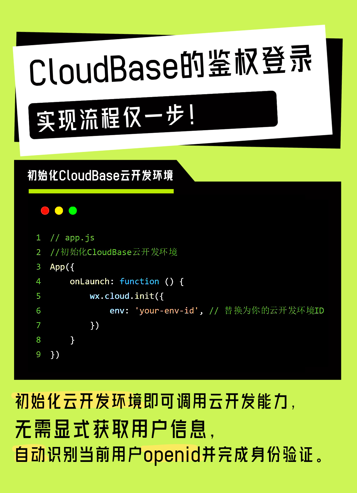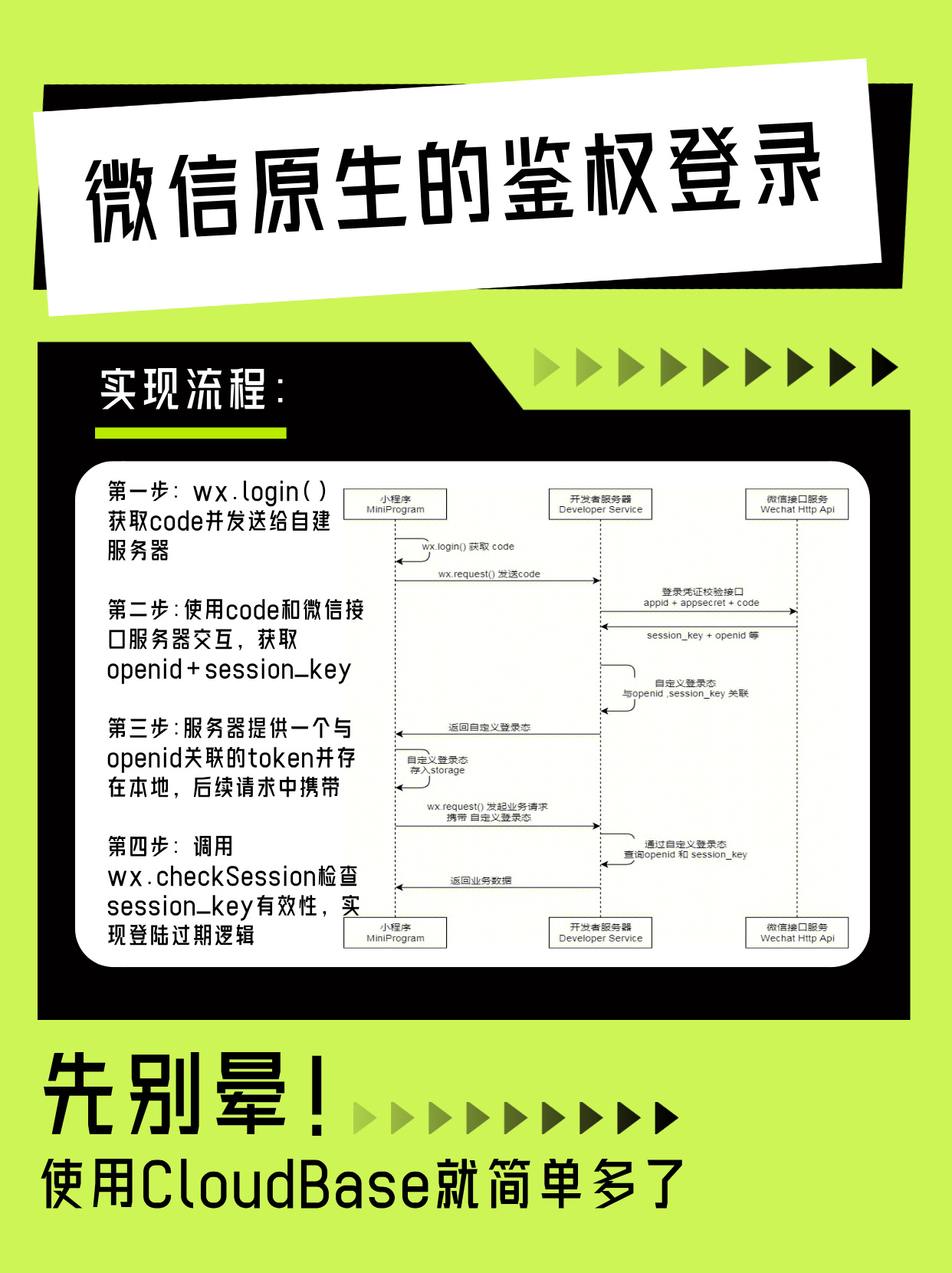 基于微信原生API的自动鉴权机制,调用云开发服务时系统自动识别当前用户openid并完成身份验证,省去繁琐的手动获取openid步骤。