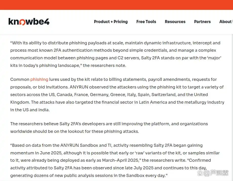 近年来,多因素认证(MFA)被广泛视为抵御凭证窃取的关键防线。然而,新型钓鱼工具包“Salty 2FA”的出现,揭示了传统MFA在面对实时中间人代理(Adversary-in-the-Middle, AiTM)攻击时的结构性脆弱性。该工具包通过动态反向代理机制,在用户完成完整认证流程(包括输入密码与MFA验证码)后,同步截获有效会话Cookie与访问令牌,并立即用于接管Microsoft 365账户,实现对Outlook、Teams、SharePoint等核心服务的无缝访问。本文基于KnowBe4与ANYRUN披露的技术细节,系统剖析Salty 2FA的工作原理、对抗检测机制及横向扩展能力,指出当前依赖静态MFA验证的安全模型存在根本缺陷。研究进一步论证,仅部署MFA不足以阻断高级钓鱼攻击,必须结合条件访问策略、客户端证明(Client Attestation)、连续访问评估(CAE)及FIDO2无密码认证构建纵深防御体系。文章提出可落地的检测逻辑与缓解措施,并辅以代码示例,强调安全指标应从“钓鱼点击率”转向“被劫持会话的有效持续时间”,以更真实反映组织身份安全态势。