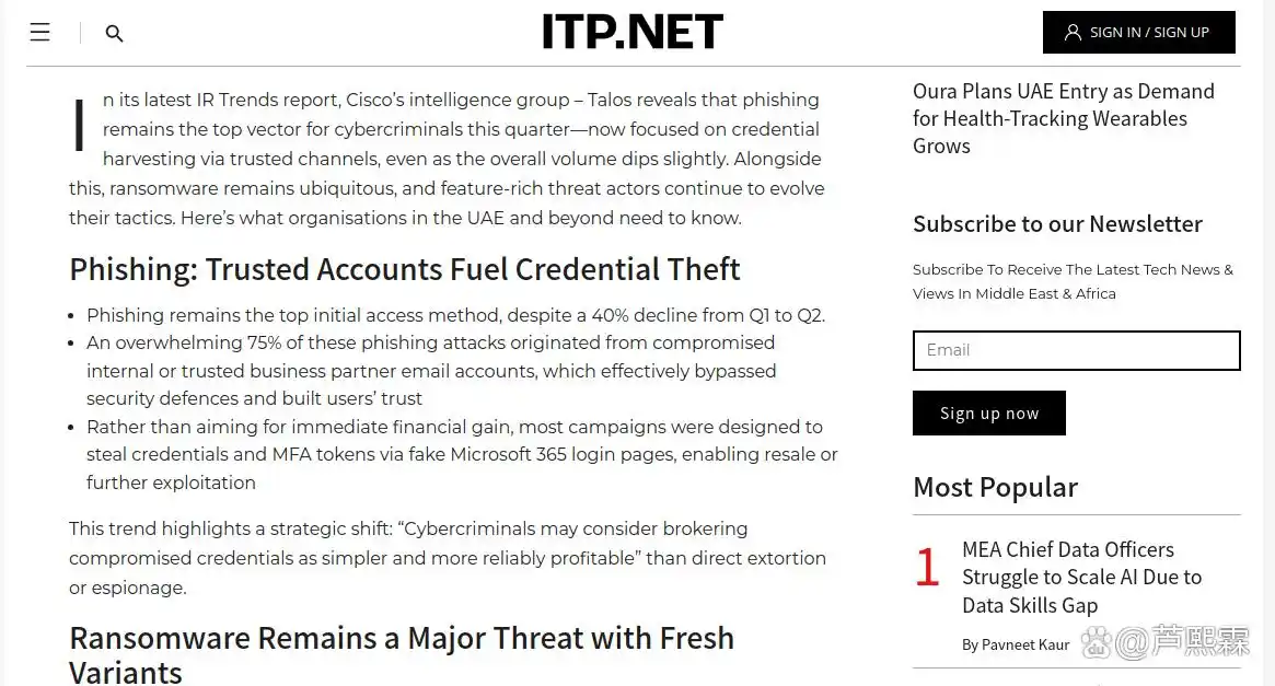 凭证窃取的持续主导地位,标志着网络安全攻防重心已从网络层全面转向身份层。钓鱼攻击的多通道化与勒索软件的凭证驱动模式,共同构成高效、低噪的现代攻击范式。应对这一挑战,组织必须摒弃“边界防护”思维,将身份视为动态、可度量、需持续验证的安全平面。