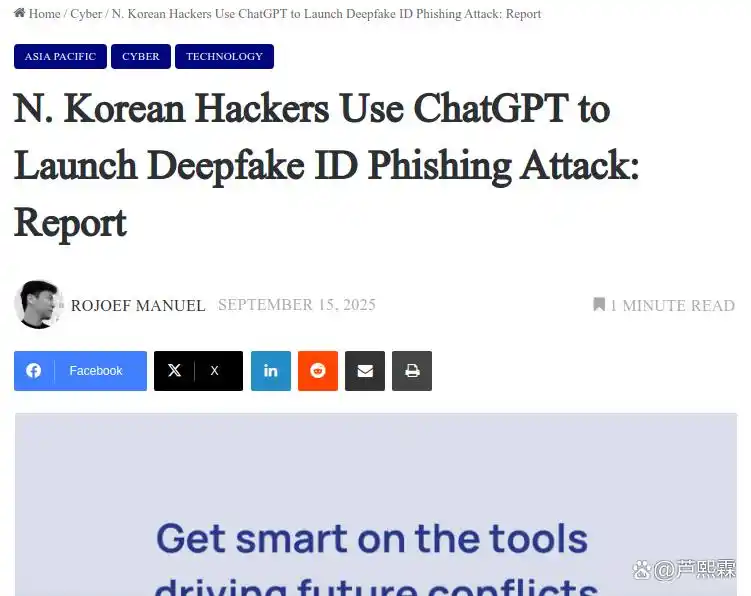 朝鲜Kimsuky组织利用ChatGPT与深伪技术生成军人证件的攻击案例,标志着国家级APT活动进入“AI赋能”新阶段。此类攻击不仅技术复杂度高,更利用了机构间协作的信任惯性,对传统安全防线构成严峻挑战。本文通过解构攻击链、识别防御盲区并提出可落地的技术对策,强调了在身份验证、内容分析与人员意识三个维度构建纵深防御的必要性。
