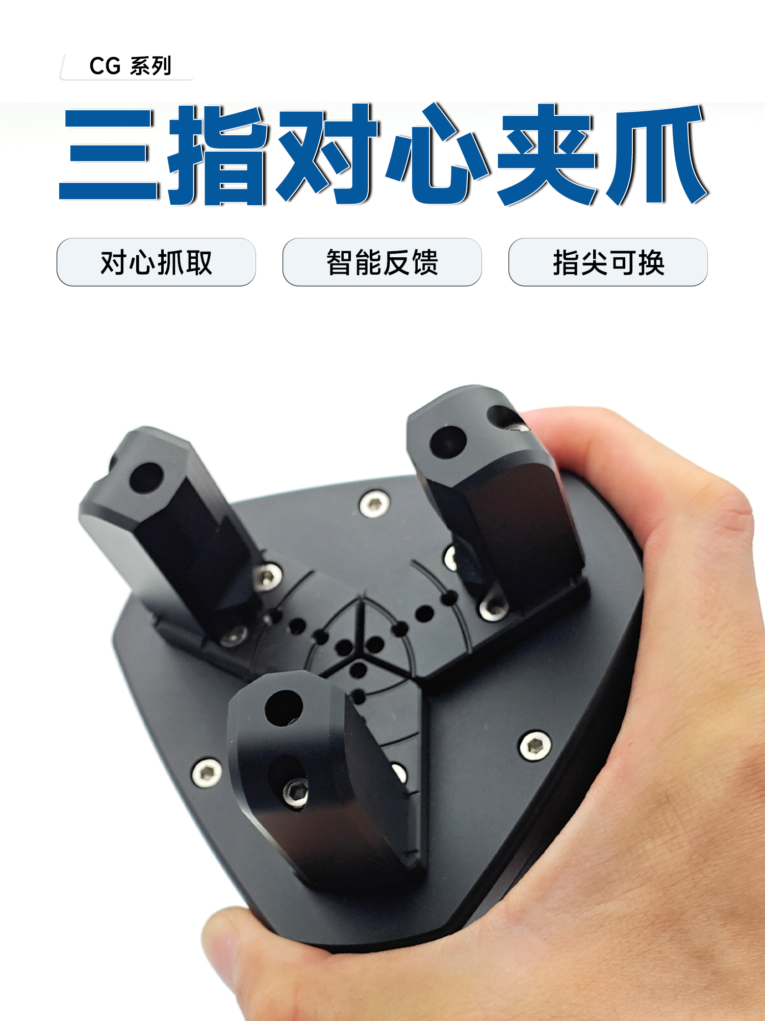 综上,CG三指对心电爪通过结构创新、高精度控制与安全机制,其高精度、高刚性、高安全性的特性,不仅提升了生产效率,更降低了全生命周期维护成本,为自动化领域提供高精度对心抓取精确解决方案。