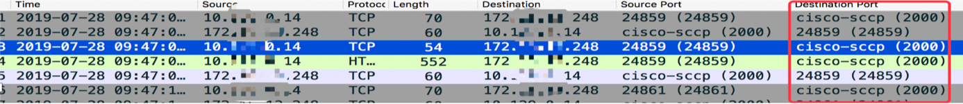 Skinny协议,即sccp,是思科专有的VOIP协议,用于连接Cisco VoIP电话到Cisco 呼叫管理服务器。此外通过Wireshark也可以看到2000端口被识别成Cisco-SCCP。