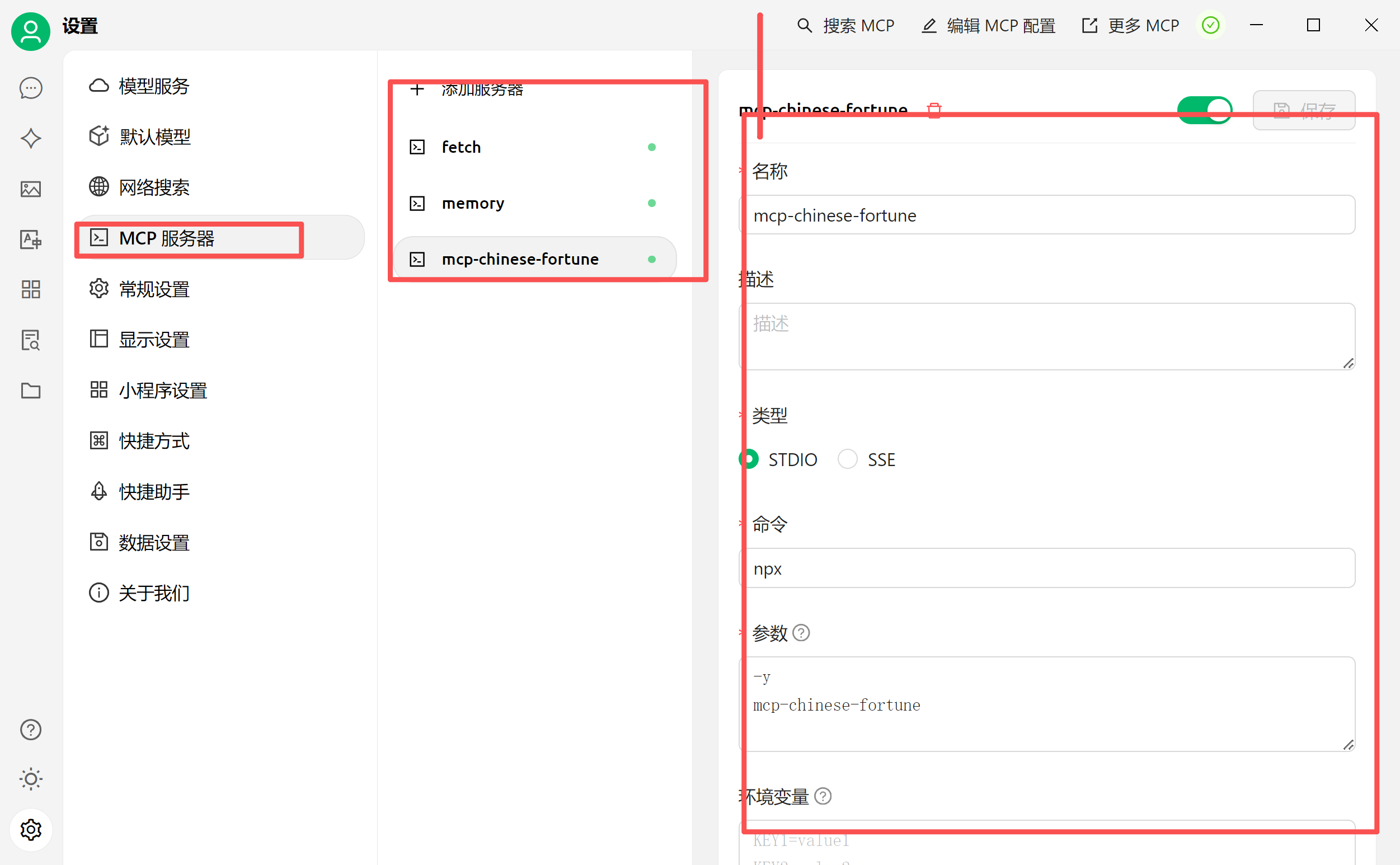 }同样也是在【设置】的【MCP服务器】中进行同一管理;