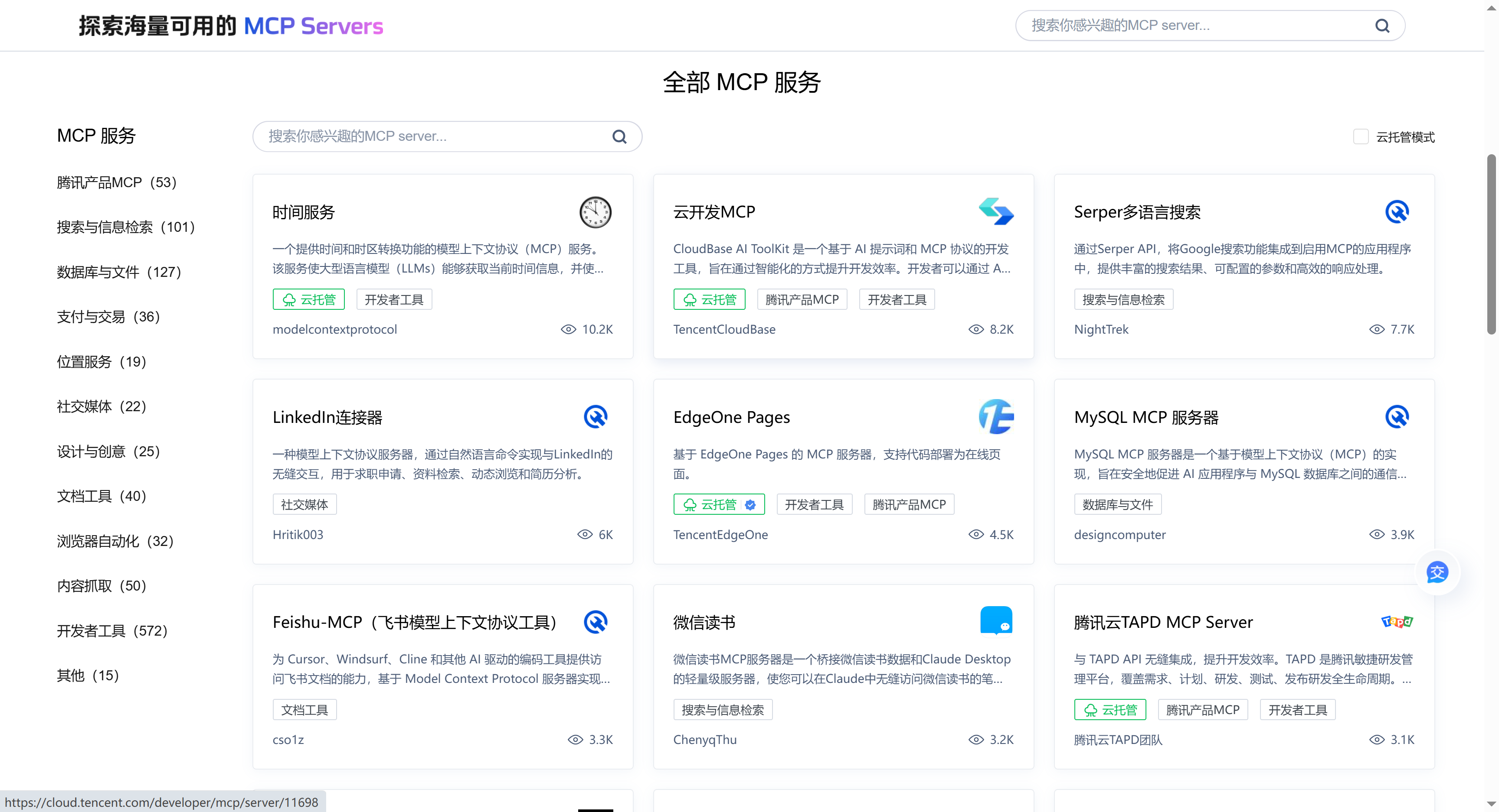腾讯云MCP 广场是一个将模型生态与 MCP 的工具生态桥接起来,为用户创造了一个无缝的、强大的“模型+工具”一体化体验。它极大地降低了使用 AI 能力的门槛,是推动 AI 智能体走向普及化和实用化的重要一步。