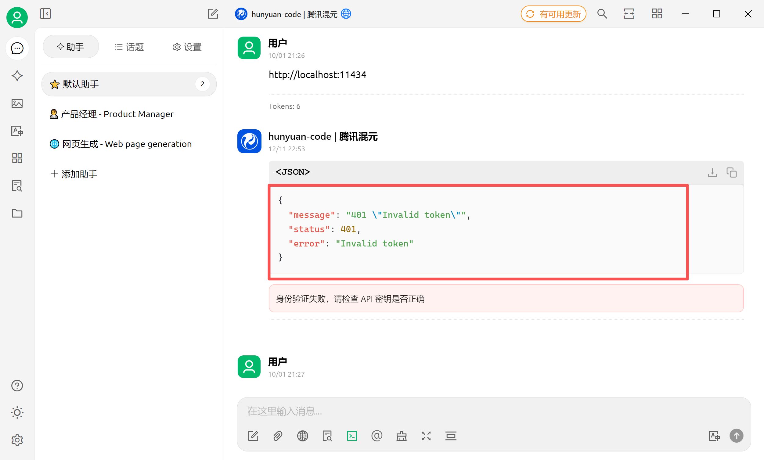 选择对应的服务,发送聊天,查看返回的结果: