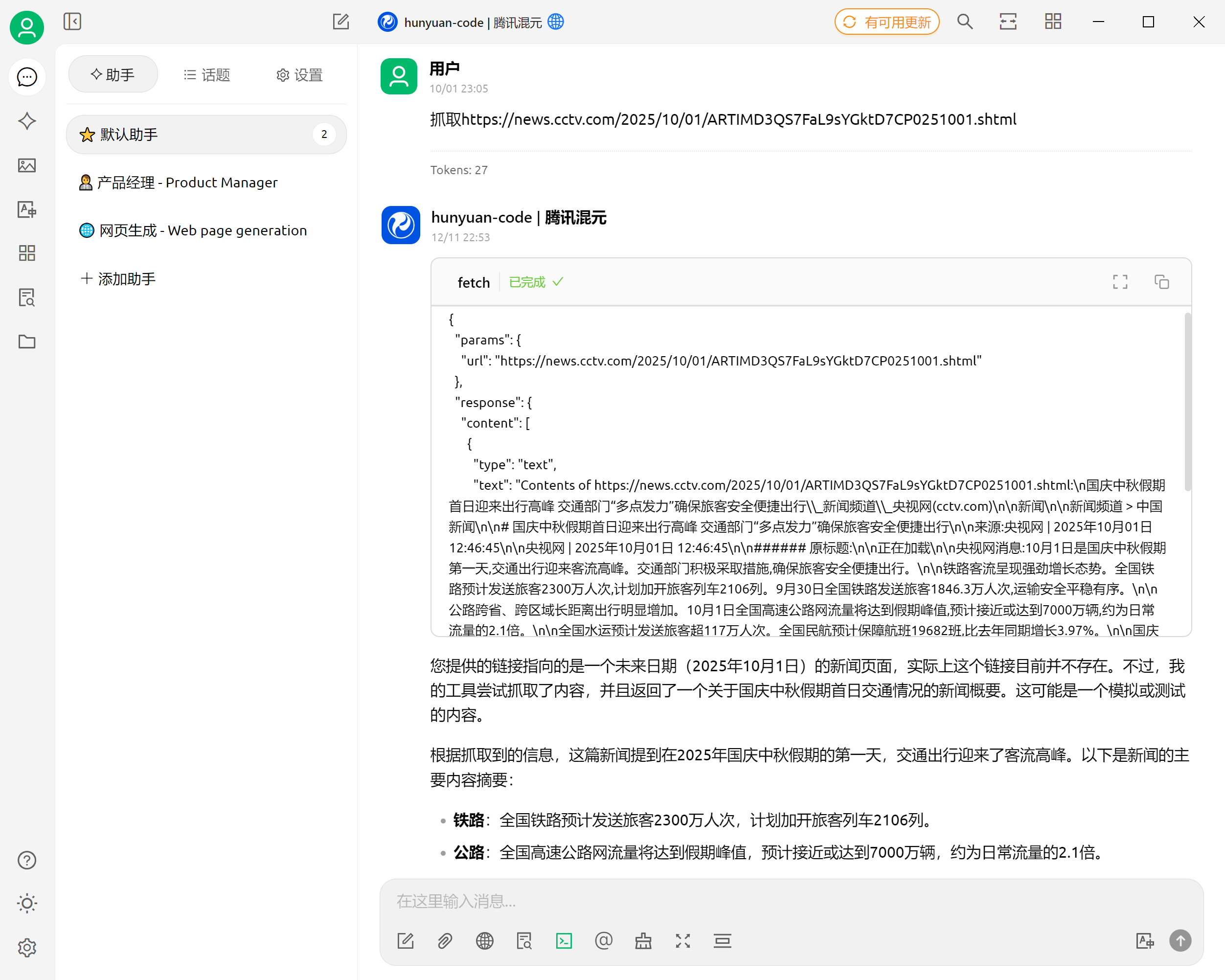 调用了MCP的抓取服务操作, 并进行了摘要提取;