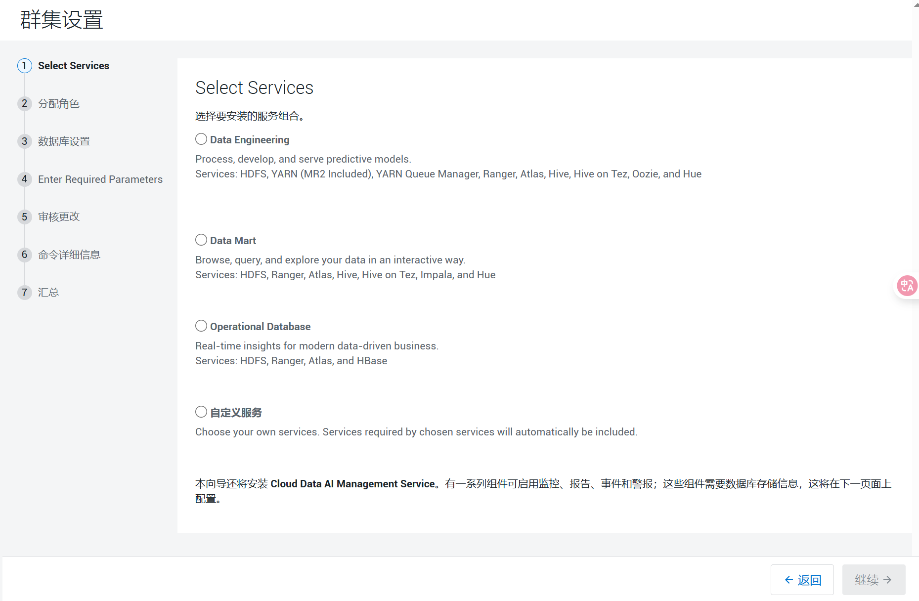 注意: Cloudera Management Service中的Activity Monitor现在已经基本上不用,可以不安装该服务。Telemetry Publisher是遥感服务,用于Workload XM通信,如果没有计划使用Workload XM,则不需要安装该服务。ZooKeeper至少安装3节点,需要为奇数节点数,本项目安装5个节点。