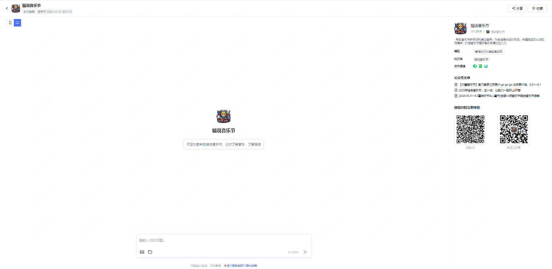 通用AI助手已不稀奇,但像“猫说音乐节”这样深耕单一领域、具备深度专业知识和鲜明个性的智能体,才是真正有价值的创新。