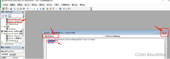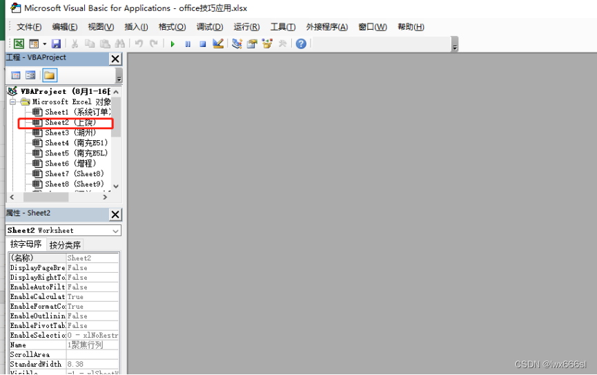 选择 Visual basic 打开,打开要设置的sheet(如图)