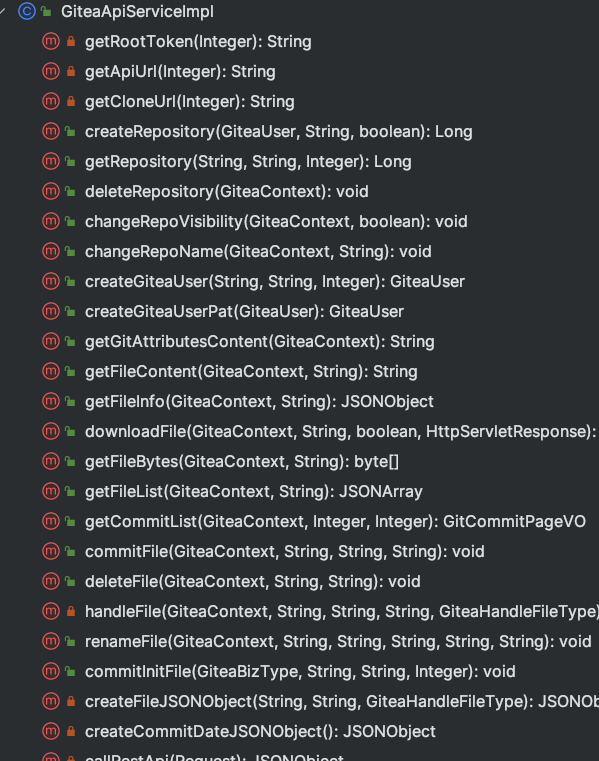 如图,我们可以将所有的 Gitea API 封装成如下的 Java 服务: