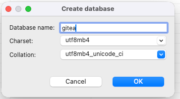 因为笔者使用 MySQL 最多也最熟悉,所以我们选择前置安装 MySQL 8 。安装完 MySQL 后 ,在数据库中新建数据库 gitea (此时,gitea 数据库并没有任何表)。