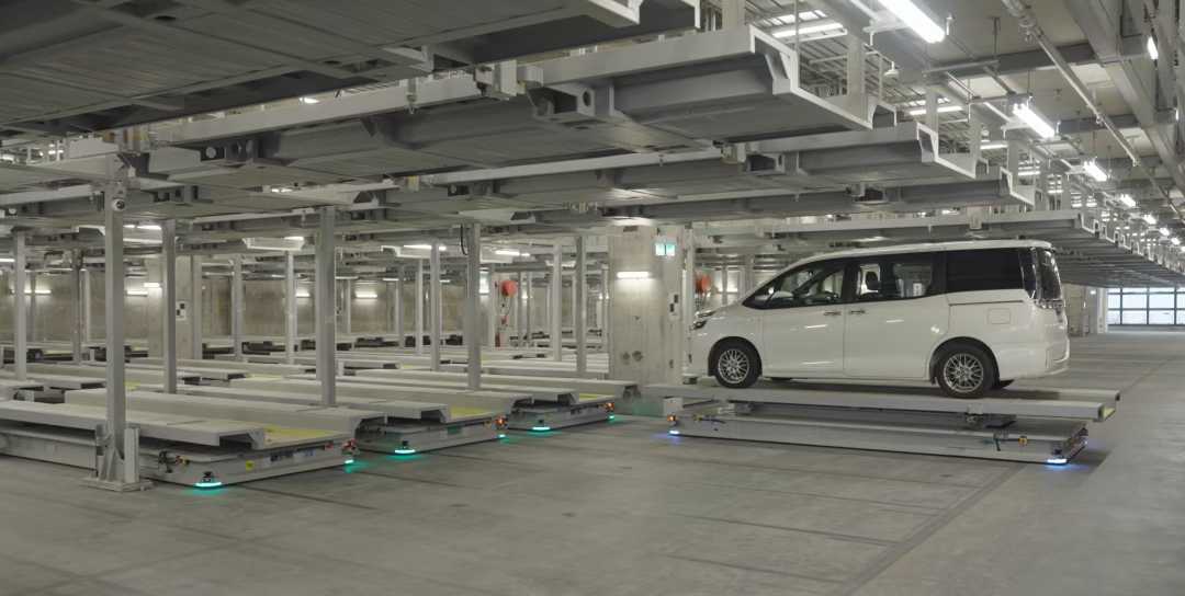 由中集物联承建的香港机场港珠澳大桥香港口岸自动化停车场采用了全球领先的 AGV 机器人泊车技术,车主只需把车开进指定区域,下车核验证件即可完成存车,由 AGV 机器人自动将车辆搬运举升停进泊位,高峰期每小时能处理120辆车,可以大大节省乘机旅客的时间去办理出入境和值机手续。