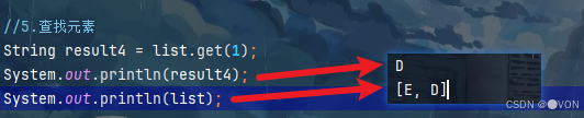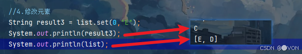 String result3 = list.set(0,"E");