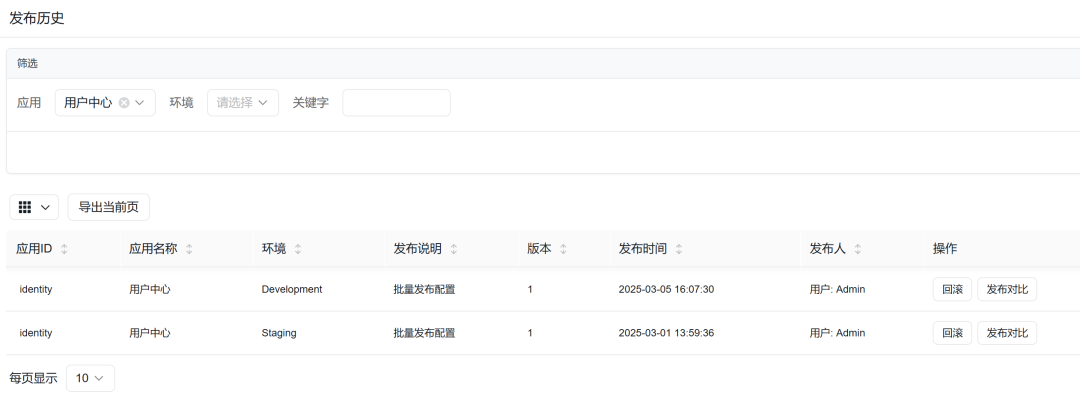 /// 配置发布历史DTO