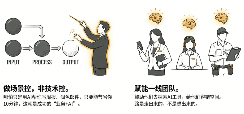 先有业务场景,再有技术落地。这不是保守,这是务实。做实体企业就该脚踏实地,AI不是赶时髦的工具,AI如果只是摆在那里好看,却带不来效益,还不如不用。