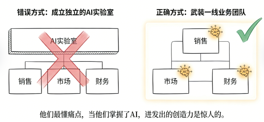 不要指望空降一个AI专家来拯救你的业务,要武装你自己的人,让他们骑在AI背上干活。
