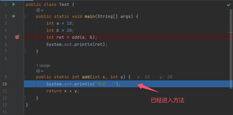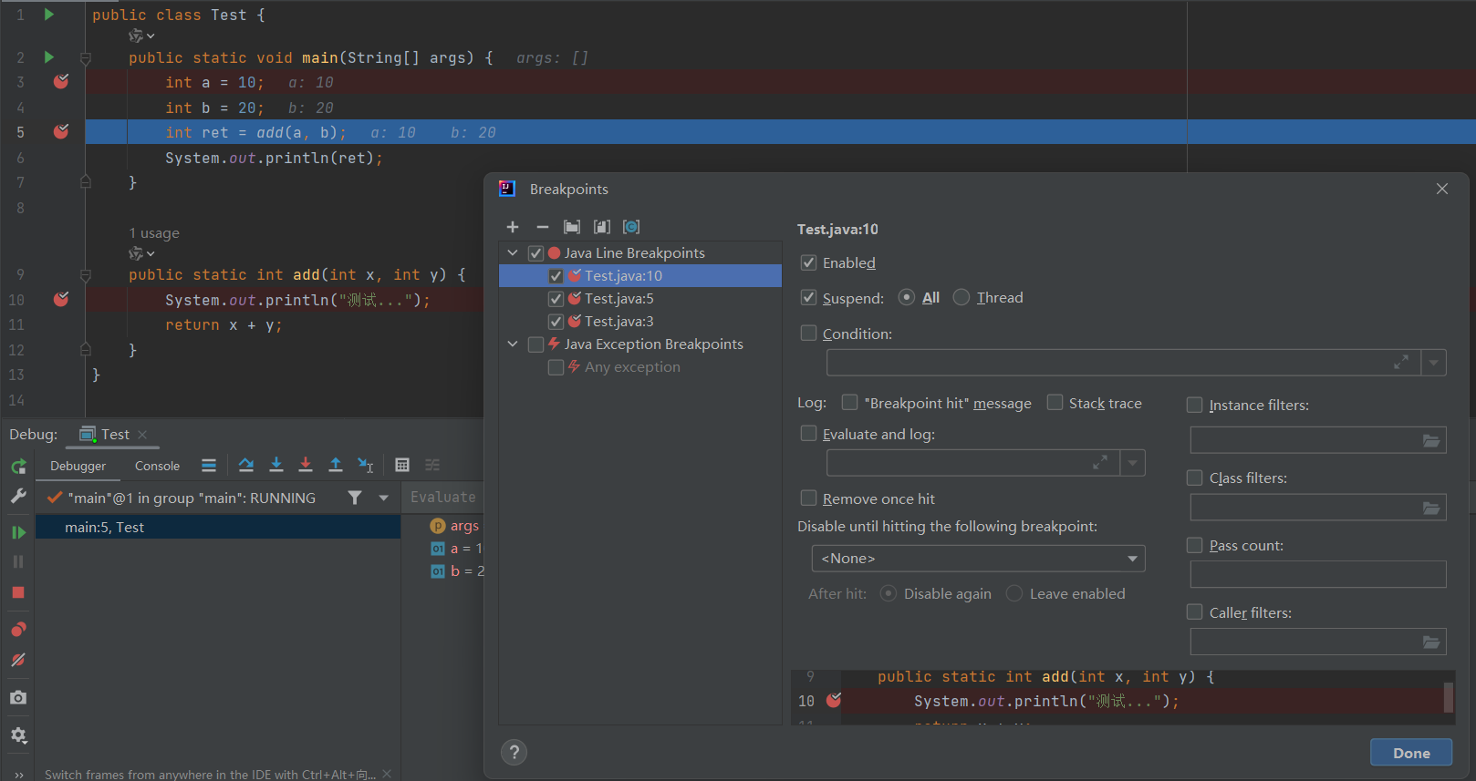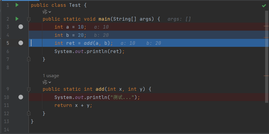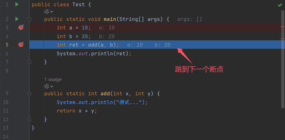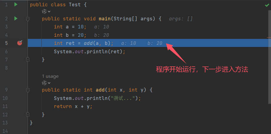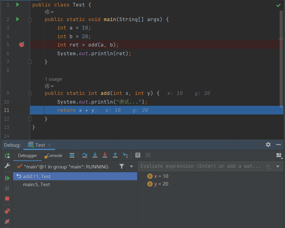 此时add:11 main:5属于调用堆栈信息,先调用main方法,后调用add方法