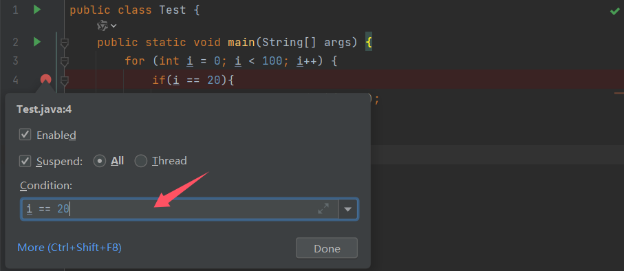 当⼀个代码需要满足某种条件进行调试,此时可以使用调试断点