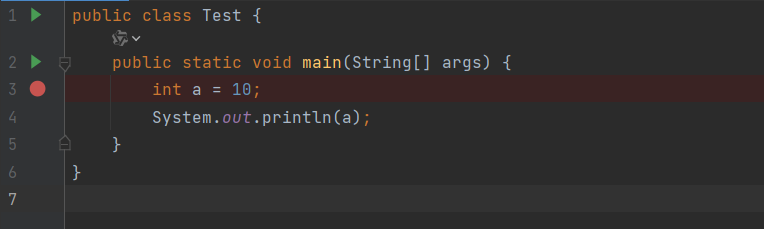 把鼠标放在行号左侧这里,点击鼠标左键,出现红色按钮