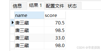 select s.name, sc.score from student s join score sc on sc.student_id = s.id where s.name = '唐三藏';